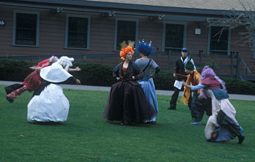 a subtle presentation of narrative texts (signage and spoken word), institutional set dress ("costumed" buildings and attendant grounds) and choreographed bodies