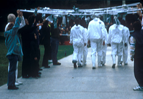 music portion of the opera was communicated via CD/headphones. Audience members were divided into units of eight representing both the eight biomes of Biosphere 2
